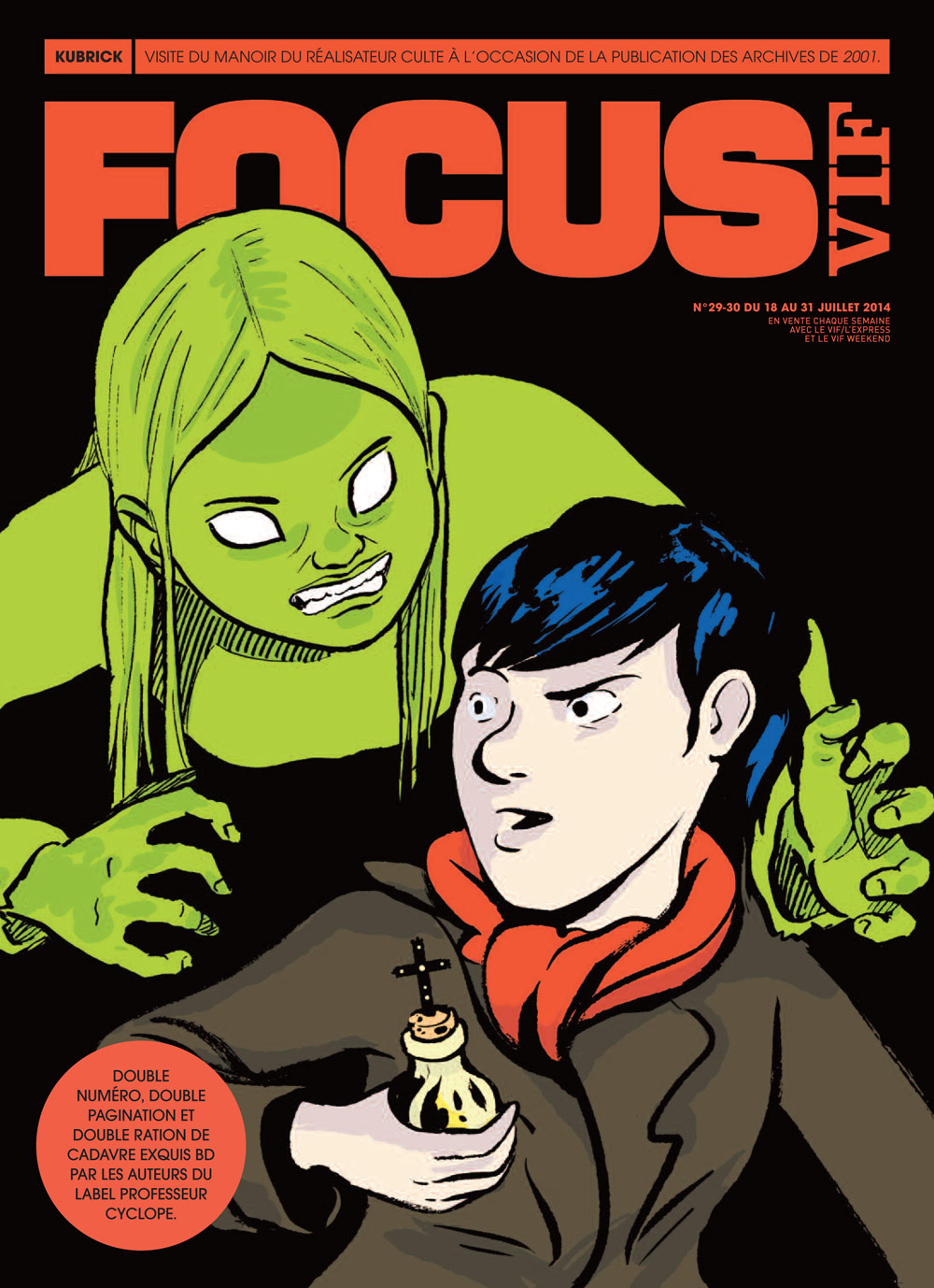 Le numéro du jeudi 17 juillet sera un numéro double. Pierre Maurel et moi-même avons fait la couverture du mag pour la promo de nos albums sorti récemment chez Casterman. On a également dessiné deux pages chacun de la suite d’un récit en cadavre exquis dont les premiers épisodes ont été dessiné par Hervé Bourhis, Hugo Piette et Camille Burger.