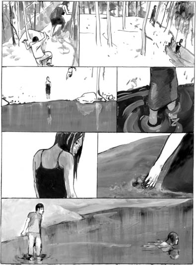 La rupture et les états dans lesquelles elle nous entraîne et peux nous laisser sont le sujet de ce livre sensible . La confusion (mentale) des protagonistes trouvent écho dans le rendu à la gouache posé parfois comme en fondu, presque en lavis. Les moments semblent se confondre, entre passé et présent, souvenirs et regrets.