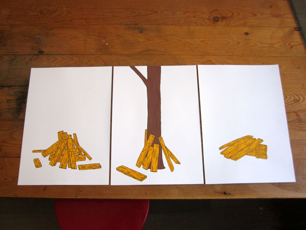 Ces dessins ont servis d’essais et de mise en place aux versions grand format présentée en janvier 2010 lors de l’expo leave me alone.