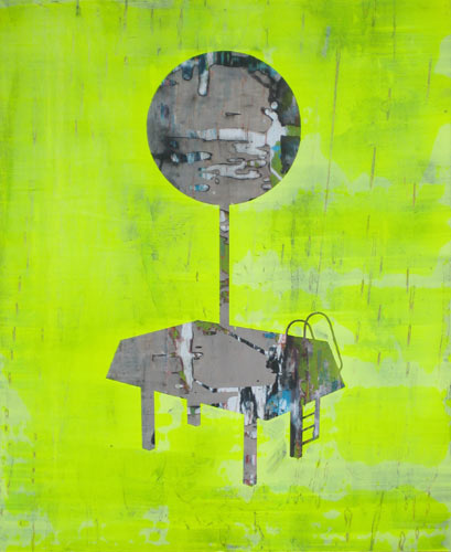 Je voulais peindre des cabanes, des forteresse ou des podiums, enfin quelque chose un peu entre tout ça.