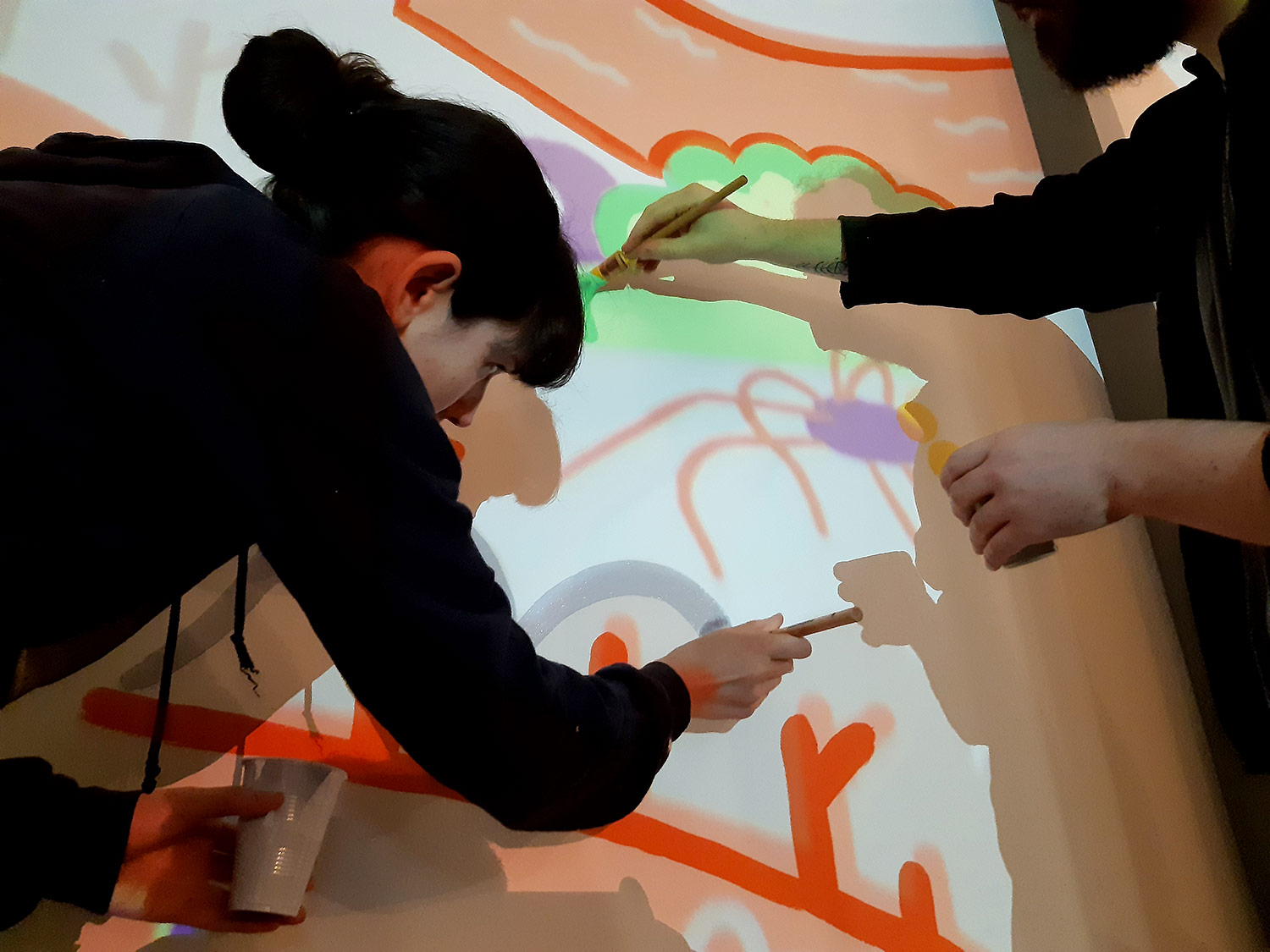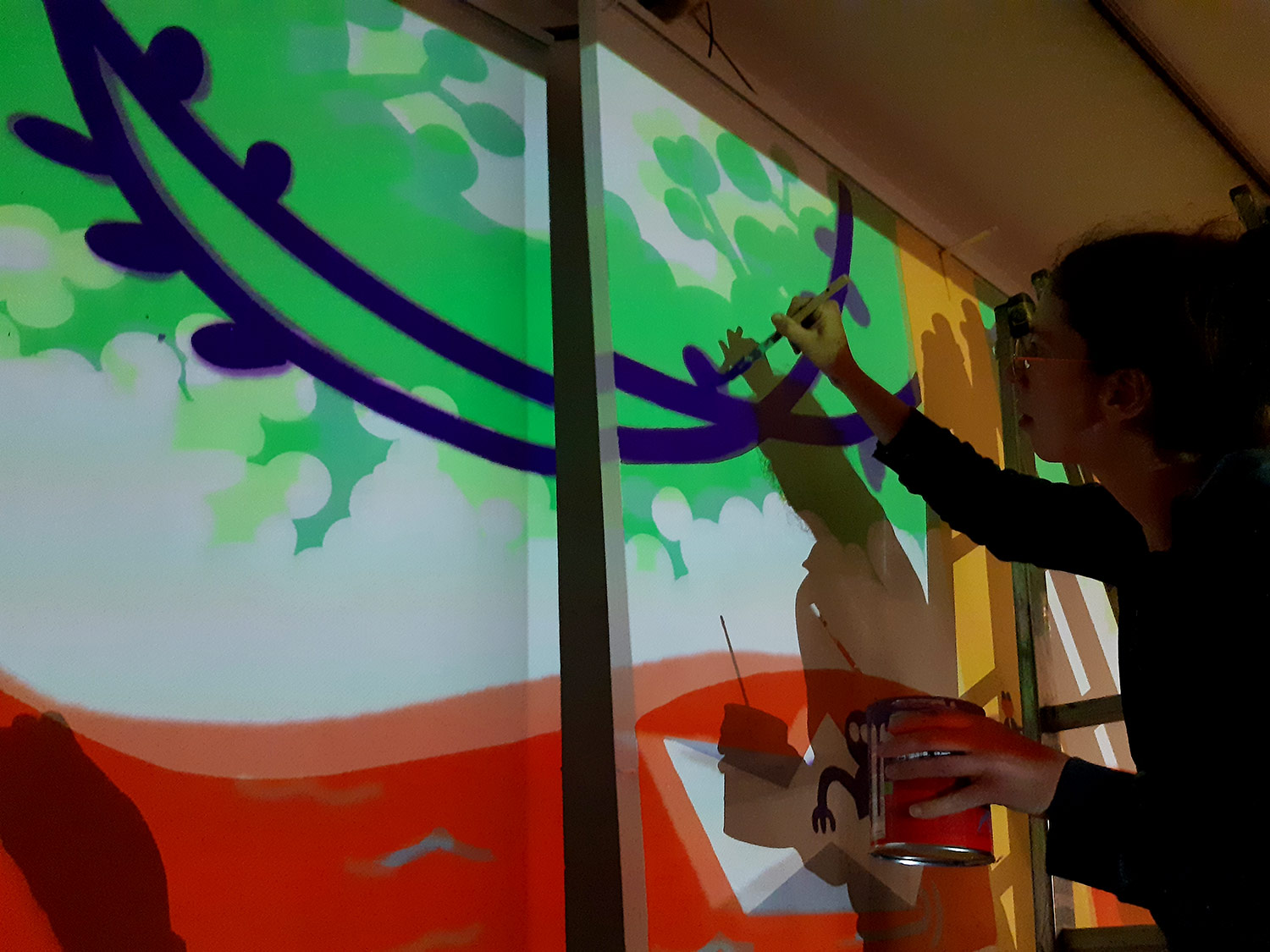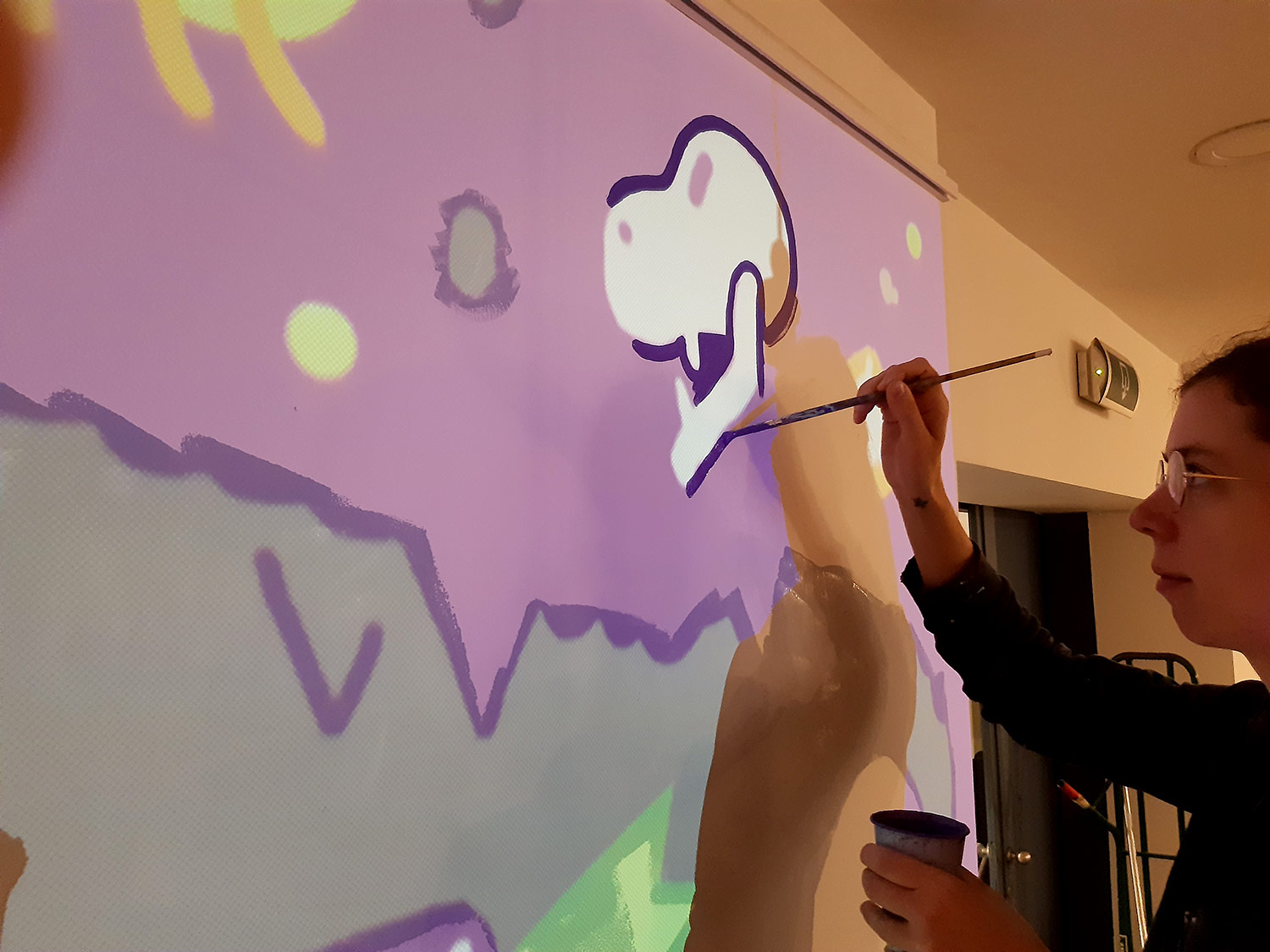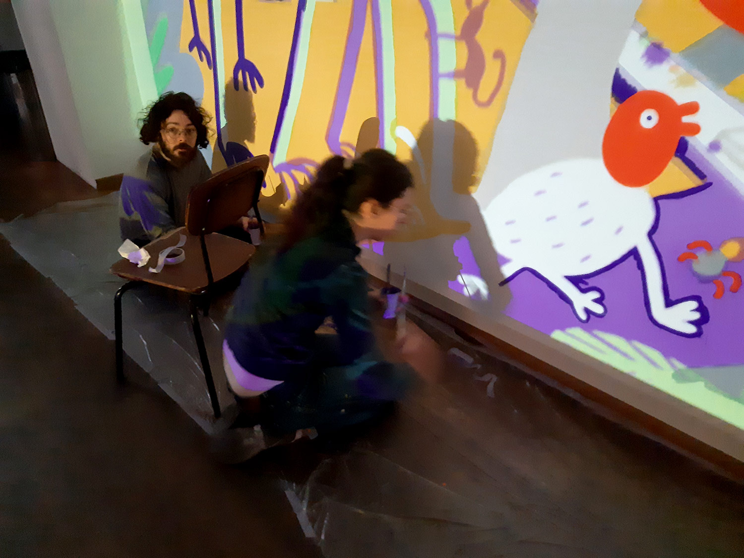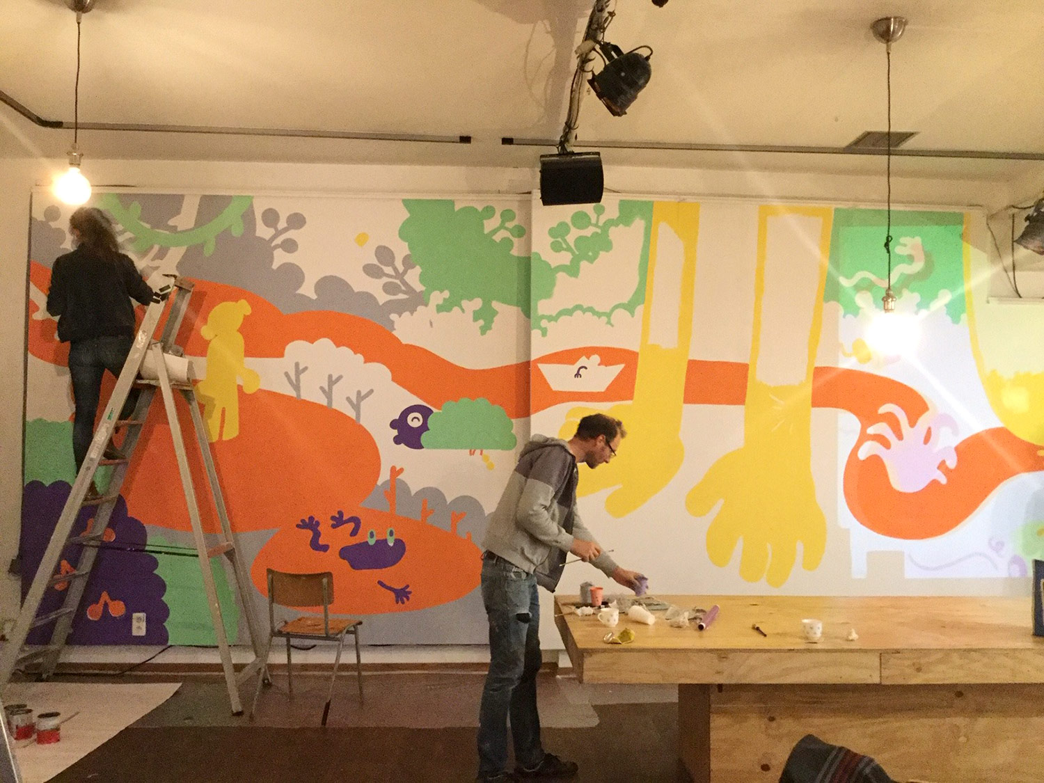 À l’occasion de l’ouverture de la saison culturelle du centre culturel Jacques Franck à Saint-Gille, nous avons peint avec Noémie Marsily, Rebecca Rosen et Mortis Ghost, une fresque de plusieurs mètres sur le thème urban jungle. Cette peinture murale divisée sur 3 murs sera visible pendant un an avant de passer la main à un autre collectif d’artistes.