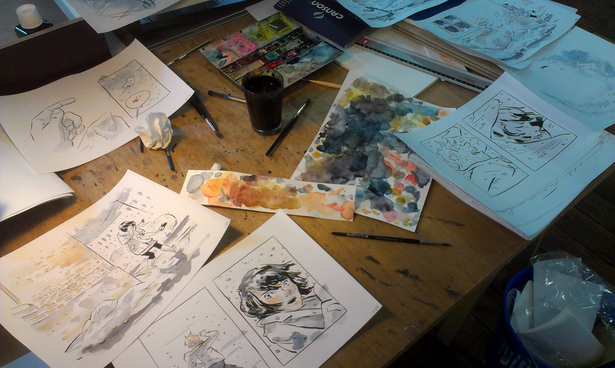 De retour après une pause parentale, je suis en train de boucler le premier épisode d’une série en turbomédia prévue à la rentrée pour professeur Cyclope. Et pour le moment c’est en mise en couleur à la chaîne ce qui me change du dessin à la tablette à la chaîne.