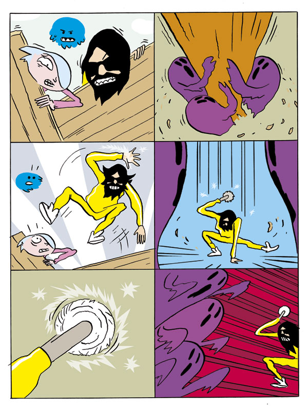 En attendant je tease un peu, la semaine prochaine vous pourrez lire sur grandpapier des pages de bande dessinée : The phoenixes, j’en ai déjà parlé sans rien montrer je sais, du coup je montre une page, juste une pour commencer, au milieu comme ça.