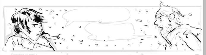 Pour l’instant je travaille sur un projet numérique et je dessine l’intégralité des cases à l’aide de ma tablette graphique de 11 ans d’âge. Au bout de quelques jours on s’y fait plutôt bien. Le tout est de ne pas en faire trop. Je prévois d’imprimer le tout et de repasser à l’aquarelle par dessus histoire de garder une trace analogique et plus naturelle sur tout ça.