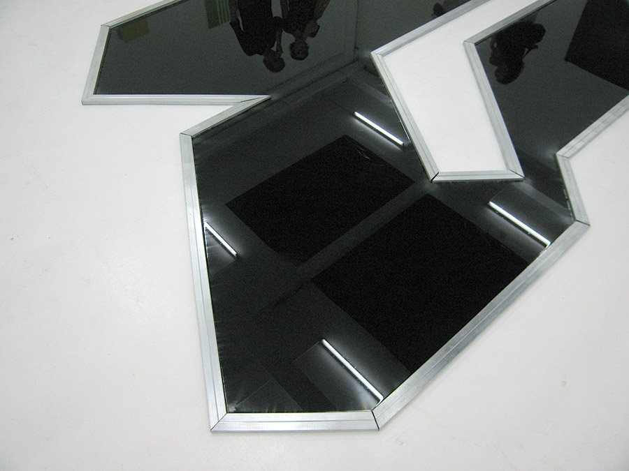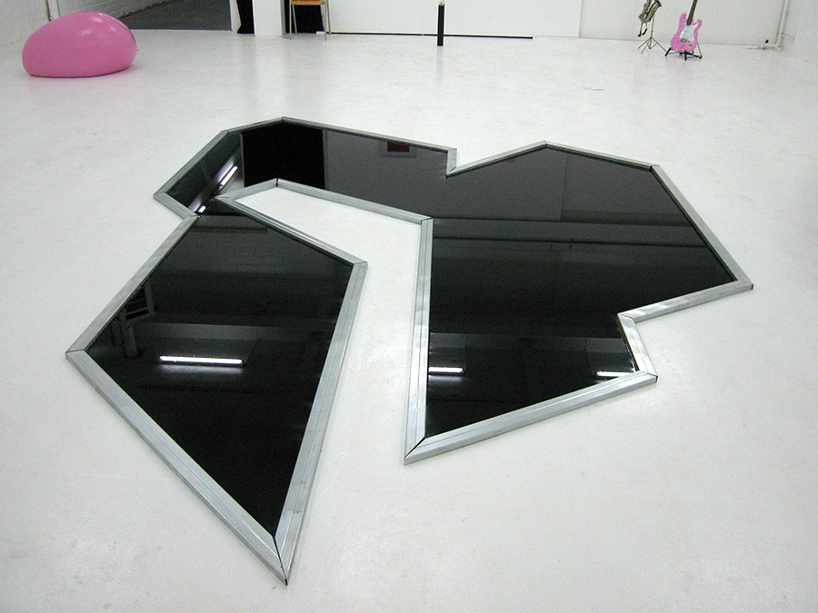 La pièce est faite d’eau, d’encre de chine, de bois, de métal et d’un bâche en plastique (épaisse !)